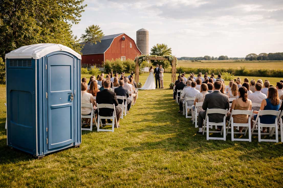 Whether you’re hosting a barn wedding, farm ceremony, backyard reception, or rural venue event, we make sure your restroom setup is one less thing to worry about.